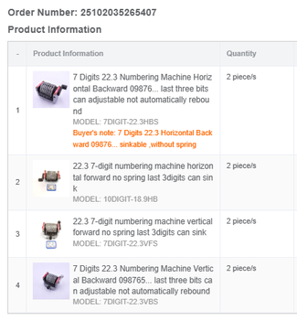 Número de pedido: 25091462500279 piezas de máquina de impresión