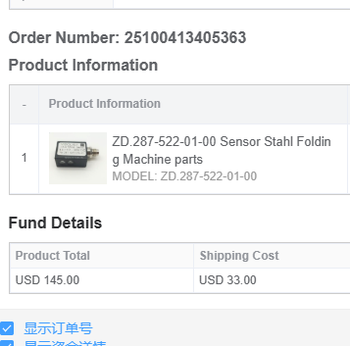 Número de pedido: 25100413405363 a Croacia Piezas de máquinas de impresión